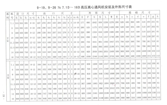風量(Q):824 ∽ 63307M3/hr全壓(H):366 ∽ 676mmH2O柱機號:4# ∽ 16#傳動方式:A型:電動機與