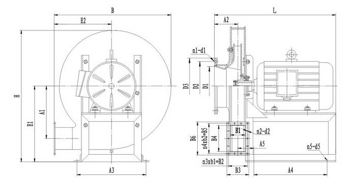 葉輪直聯;C型:電動機經皮帶輪與葉輪聯動;D型:電動機經傳動組與葉輪聯動;出口角度:0О、45О、
